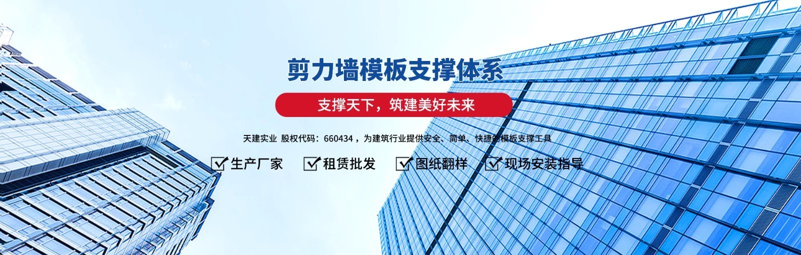 河北天建鋼結(jié)構(gòu)股份有限公司(簡(jiǎn)稱(chēng):天建實(shí)業(yè))成立于2010年,注冊(cè)資本5500萬(wàn)元,2017年掛牌,股權(quán)代碼660434,是一家集鋼支撐體系研發(fā)、生產(chǎn)、銷(xiāo)售、租賃、售后服務(wù)于一體科技創(chuàng)新企業(yè),地址位于河北省秦皇島市昌黎縣,致力為客戶(hù)提供安全、簡(jiǎn)單、快捷的模板支撐工具。公司制造生產(chǎn)的鋼背楞系列產(chǎn)品,被應(yīng)用于商用建筑、高層住宅、人防、支擋、路橋、管廊等結(jié)構(gòu),適用多種模板加固工程,如木模、鋁模、鋼模、塑料模等,同時(shí)為國(guó)內(nèi)二百三十家建筑商、開(kāi)發(fā)商、鋁模廠(chǎng)提供良好的產(chǎn)品和服務(wù),是建設(shè)服務(wù)領(lǐng)域美好品質(zhì)供應(yīng)商...